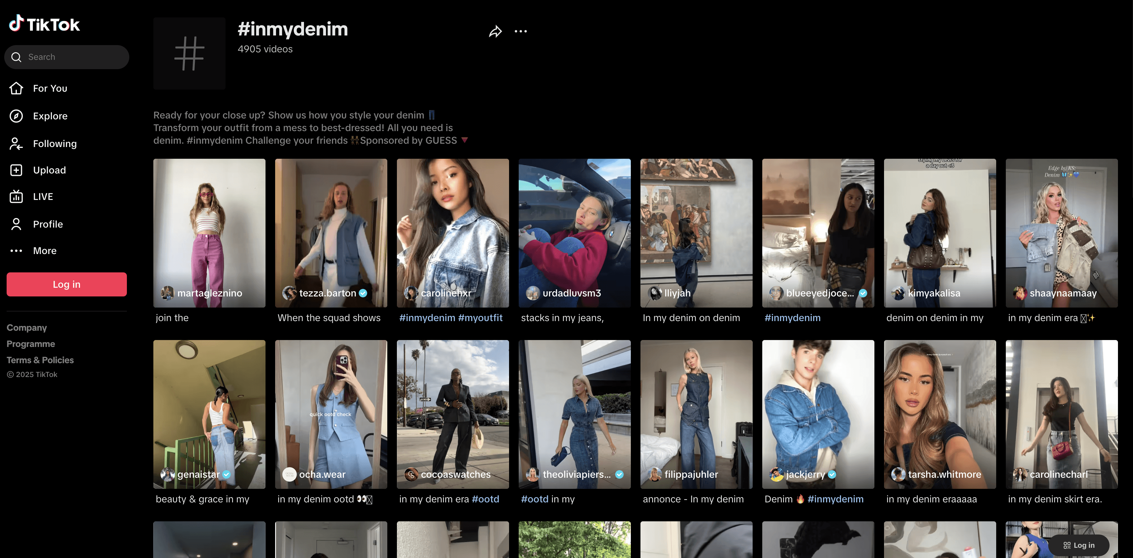 캠페인 개요: Guess는 젊은 세대를 타깃으로 ‘#InMyDenim’ 챌린지를 TikTok과 함께 론칭.